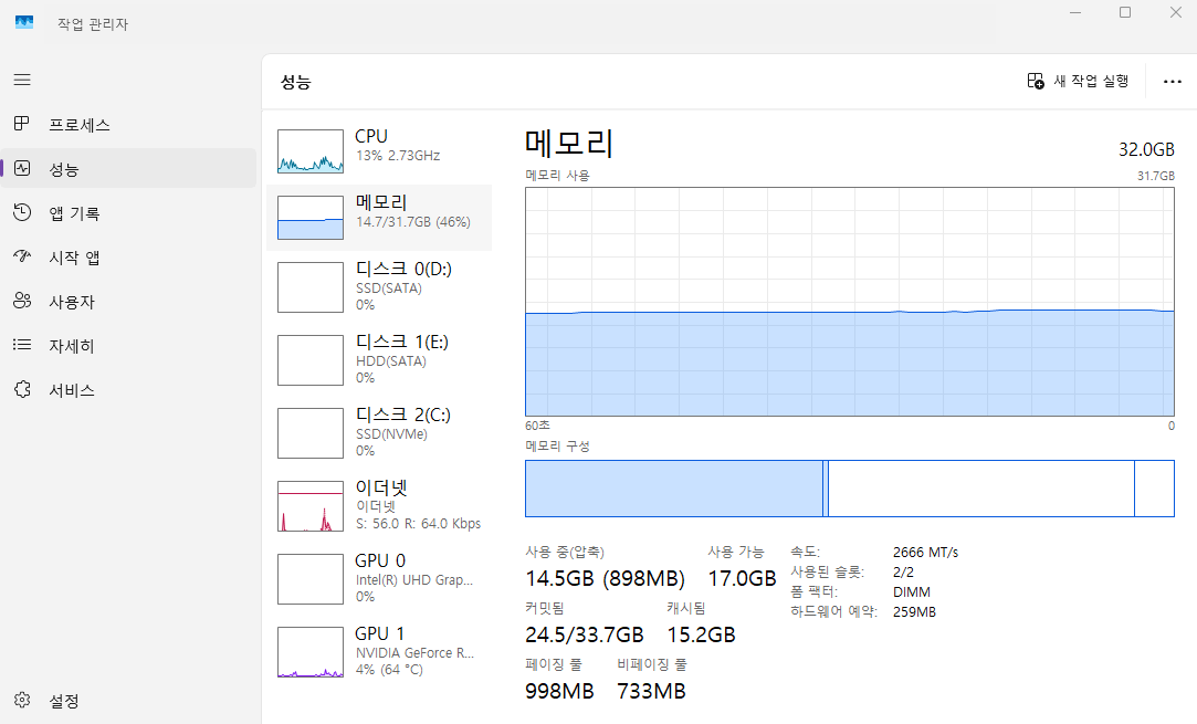 윈도우에서 작업관리자를 키게 되면 페이징풀과 비페이징풀이라는 생소한 용어가 등장하게 된다.