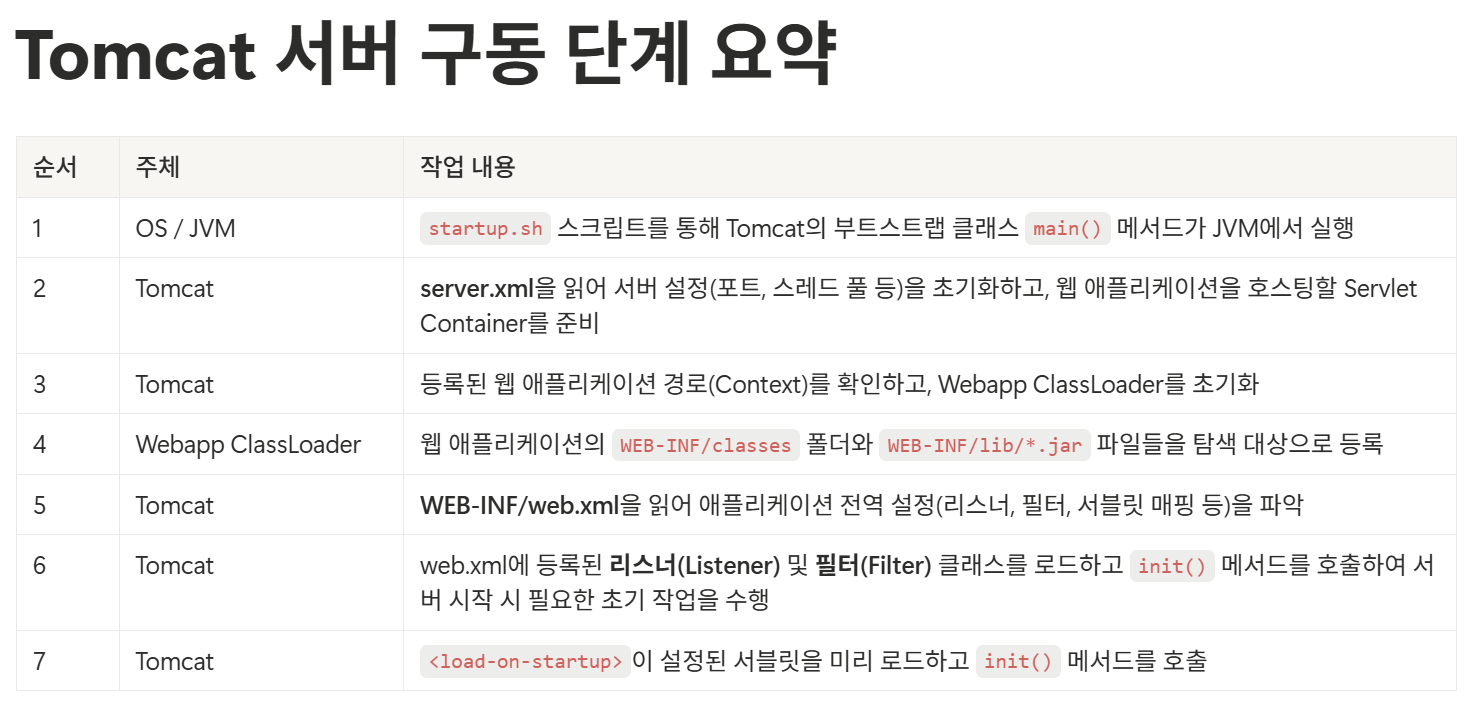 | 실행 예시 | tomcat/bin/startup.sh | java -jar app.jar |